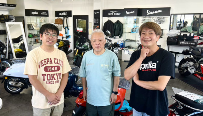 福岡市西区にある〈Vespa MOTO GUZZI FUKUOKA(ベスパ・モトグッチ・フクオカ)〉さんを集合場所とさせていただき、今回が初対面の方もいらして賑わいを見せていました。