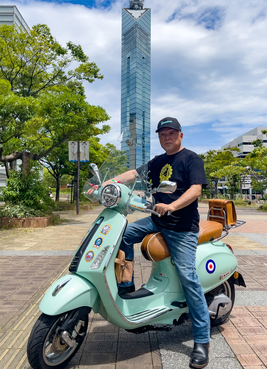 ベスパの魅力は、75年間基本的に変わらない車体デザインと鮮やかな車体色です。また、国内外にある各クラブとの交流が楽しめることですね。